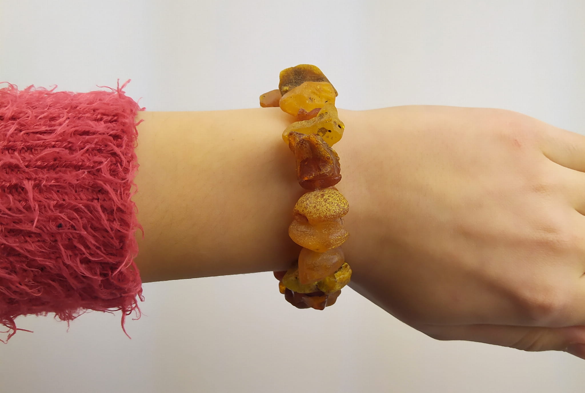 Bransoletka jest wykonana z nieobrobionego bursztynu bałtyckiego. Waga to ok.24 g, bransoletka jest na elastycznej gumce. Kolor bursztynów, może różnić się od zdjęcia. Bursztyny posiadają właściwości zdrowotne są stosowane przy problemach z tarczycą. Nasz sklep bursztynowyprezent.pl gwarantuje najwyższą jakość wykonania biżuterii z bursztynem bałtyckim. Do bransoletki oferujemy naszyjnik i kolczyki w takim samym wzorze. Zapraszamy na zakupy!