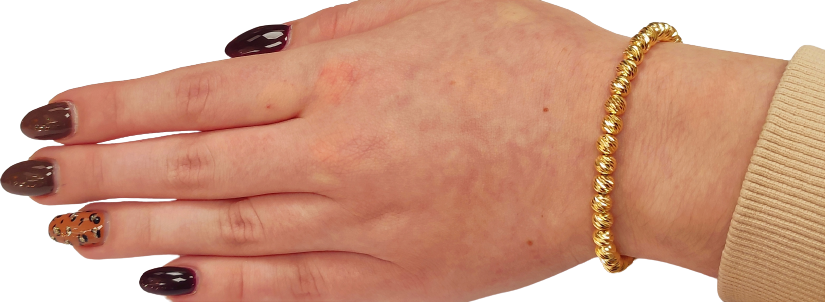Ta cudowna bransoletka modowa jest wykonana z pozłacanego srebra próby 925. Bransoletka posiada bardzo solidne, karabinkowe zapięcie oraz regulacje długości.