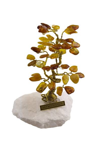 Bursztynowe drzewko szczęścia wykonane ręcznie z bursztynu bałtyckiego na podstawie z marmuru. Wysokość drzewka 8 cm, szerokość podstawki ok 5 cm, bursztynowe listki są różnokolorowe. Drzewko posiada tabliczkę z napisem DRZEWKO SZCZĘŚCIA. Nasz sklep Bursztynowyprezent.pl gwarantuje najwyższą jakość wykonanych wyrobów z bursztynem. Zapraszamy na zakupy, kupując u nas wspierasz polskie miejsca pracy!