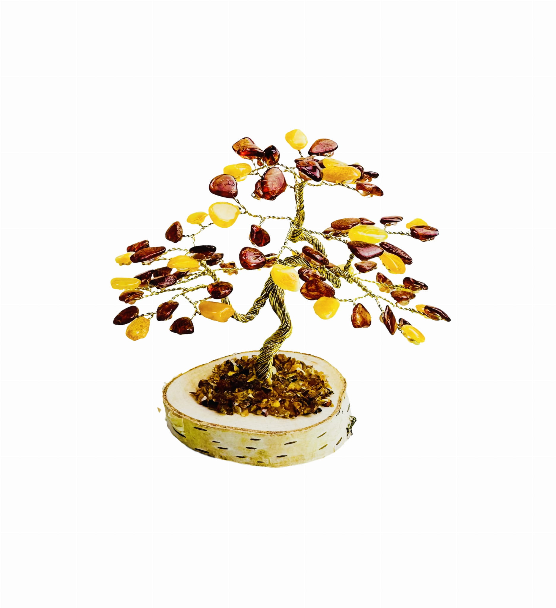 Bursztynowe drzewko szczęścia na drewnianej podstawie
