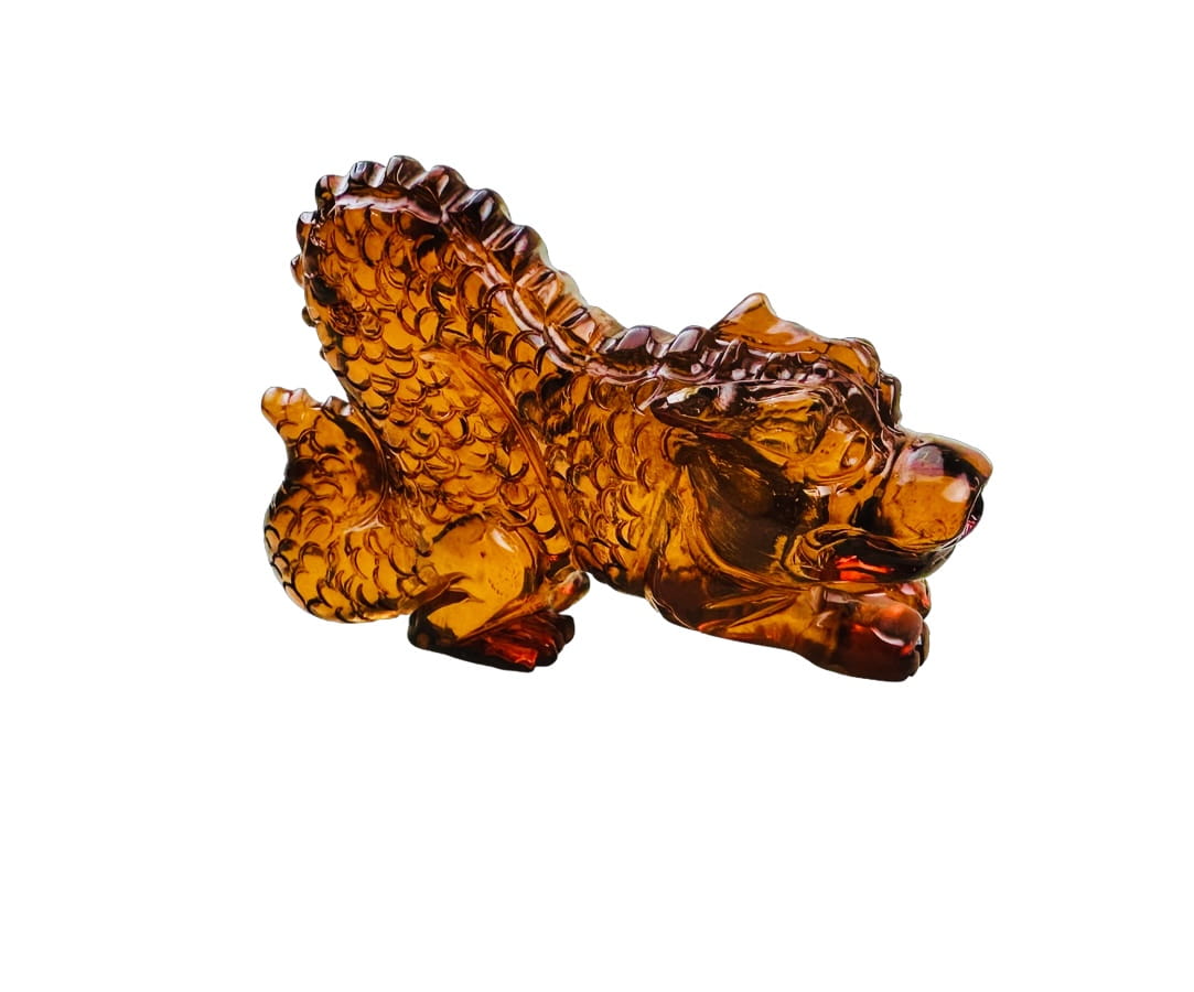 Chiński rok Smoka Smok z bursztynu unikatowa rzeźba