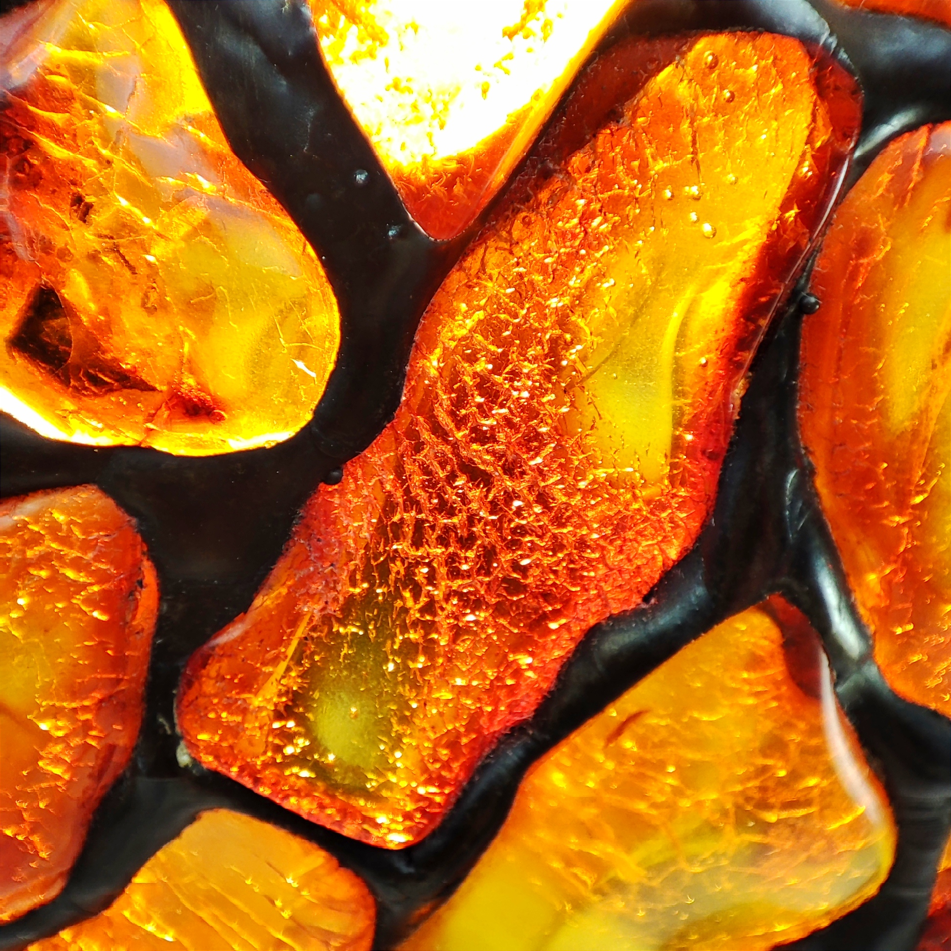 - Każdy bursztyn użyty w lampie jest specjalnie wyselekcjonowany, owinięty w pasek miedzi i lutowany cyną.