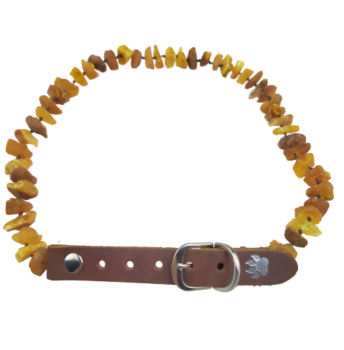 Obroża Premium dla średniego psa wykonana z surowego bursztynu bałtyckiego, skutecznie odstrasza kleszcze. Obroża jest regulowana w zakresie od 35 cm do 40 cm, posiada zapięcie z naturalnej skóry. Nasz sklep Bursztynowyprezent.pl gwarantuje najwyższą jakość wykonanych obroży. Zapraszamy na zakupy, kupując u nas wspierasz polskie firmy! Przy zamówieniu proszę o podanie obwodu szyi psa.