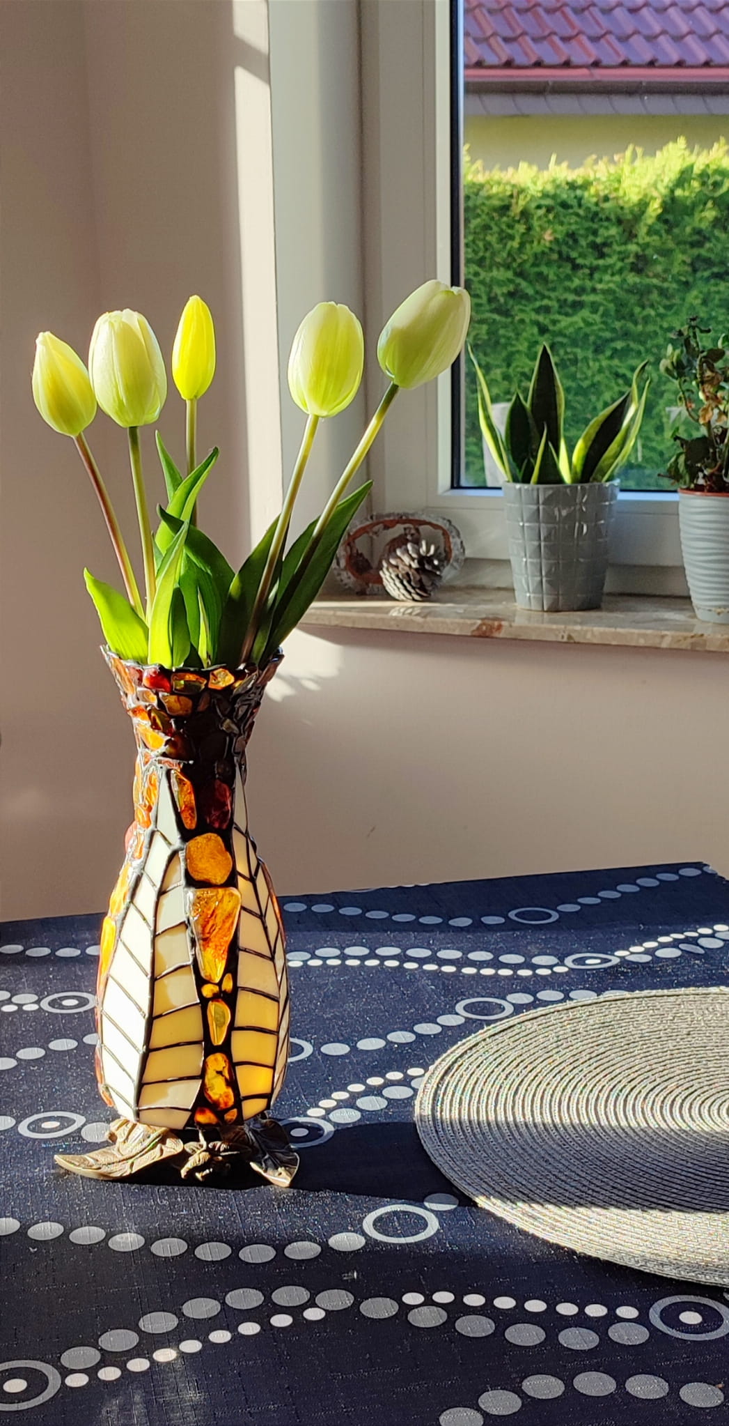 Wazon bursztynowo-witrażowy