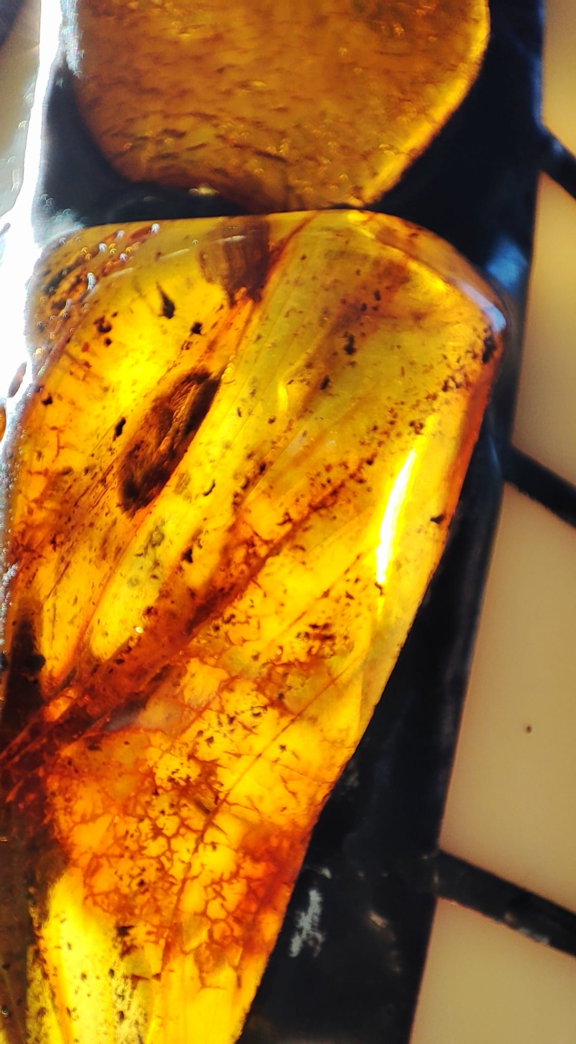 - Każdy bursztyn użyty w świeczniku został specjalnie wyselekcjonowany, owinięty miedzianą taśmą i lutowany do reszty bursztynów cyną.