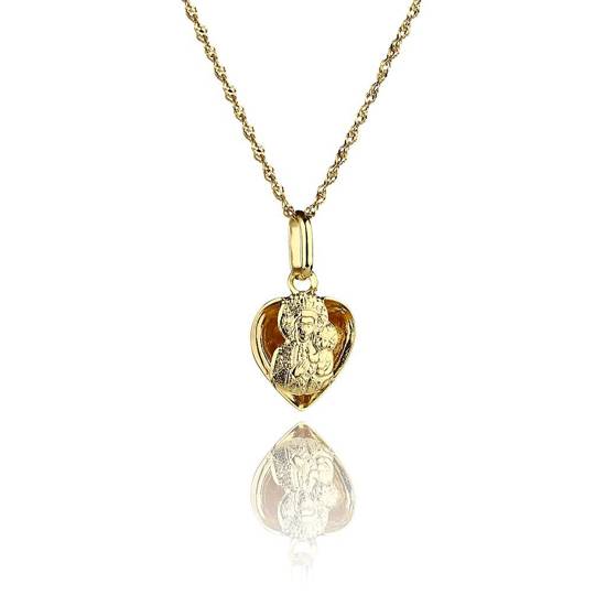 Ten cudowny i oryginalny wisiorek jest wykonany z najlepszego złota próby 585, 14k. Wisiorek przedstawia wizerunek Matki Boskiej Częstochowskiej w sercu.