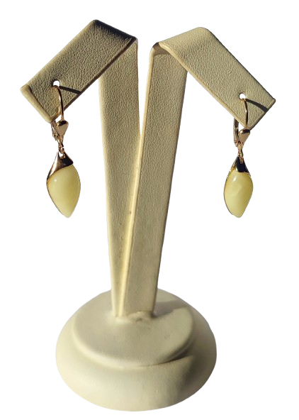 Te cudowne i oryginalne kolczyki wiszące są wykonane z naturalnego bursztynu bałtyckiego i złota próby 585, 14 k. Kolczyki posiadają bardzo solidne zapięcie angielskie. Bursztyny są koloru żółtego.